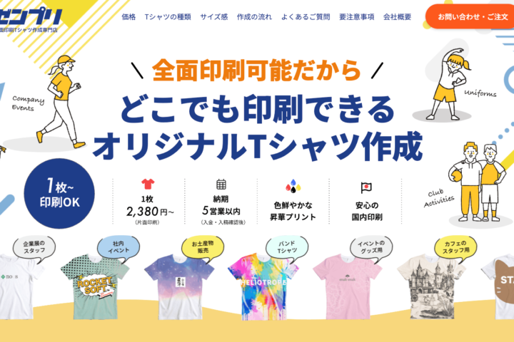 全面プリントのオリジナルTシャツを小ロット格安で制作いたします